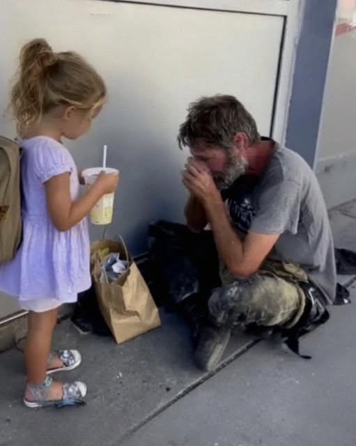 It all began one ordinary afternoon. Lily and I had just finished shopping, leaving the store with only a pack of pencils for school and a small lemonade I let her grab at the checkout. We were heading to the car when Lily suddenly stopped in her tracks. Leaning against the brick wall, just a few feet away, sat a man with his shoulders hunched, quietly crying. Shoppers streamed past him without a second glance, as if he were invisible.